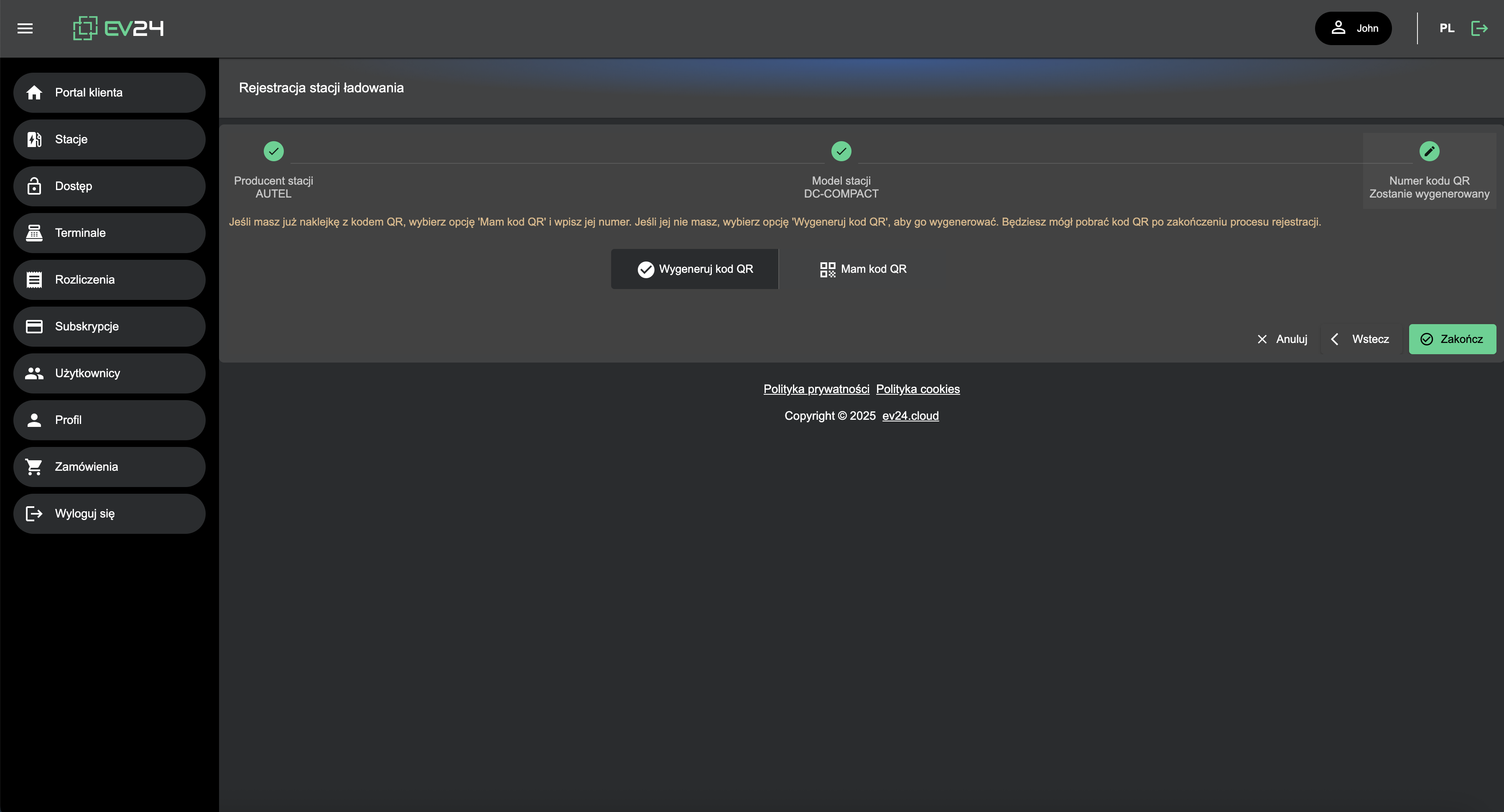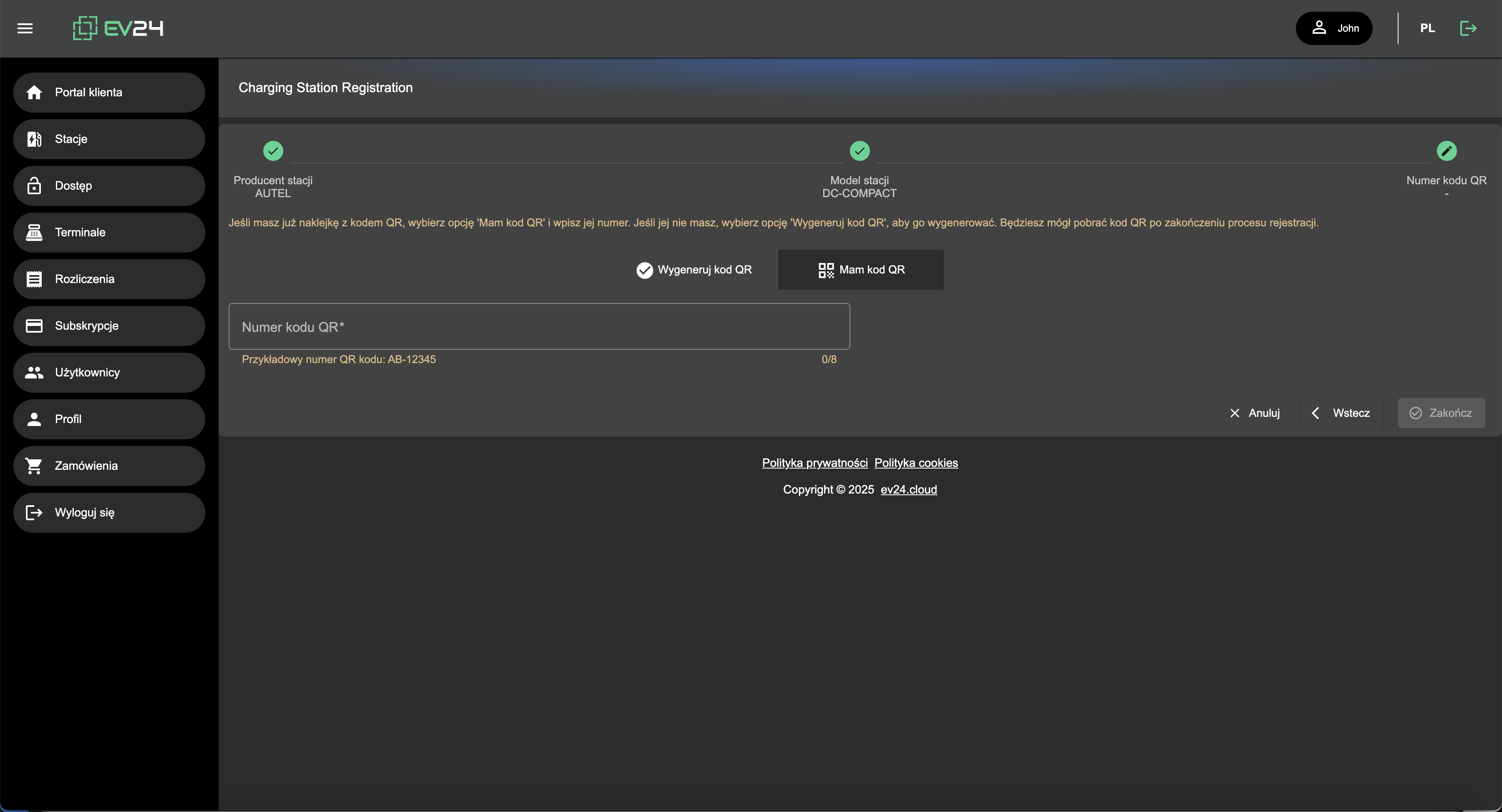 Możesz samodzielnie dodać stacje ładowania do systemu, jeśli posiada ona obsługę protokołu OCPP.